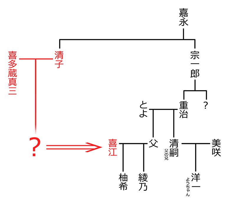 栗原:はい。まあ、実際に殺したのは慶太さんですが、彼を片淵家に紹介したのは喜江さんでしたよね。