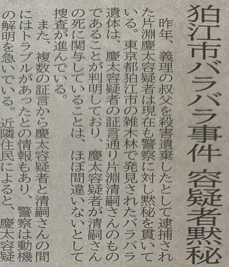 片淵慶太さんは、義理の伯父を殺害したことになる。片淵家の中で何が起きたのか、この時点では想像すらできなかった。