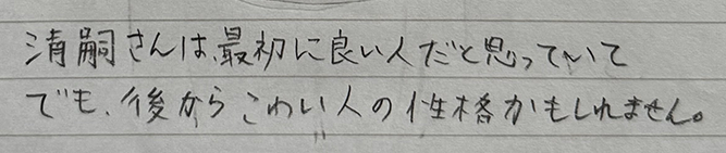 人間性が見えないんですよ。なんか、人っていうより『役割』って感じがして。