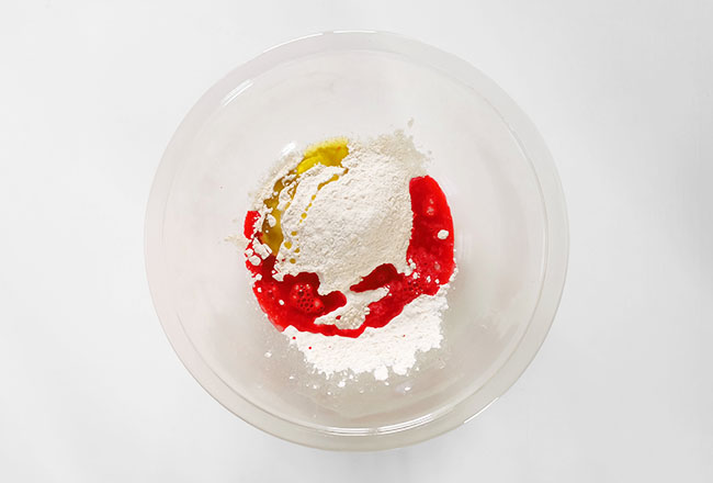 小麦粉・水・食紅など、
