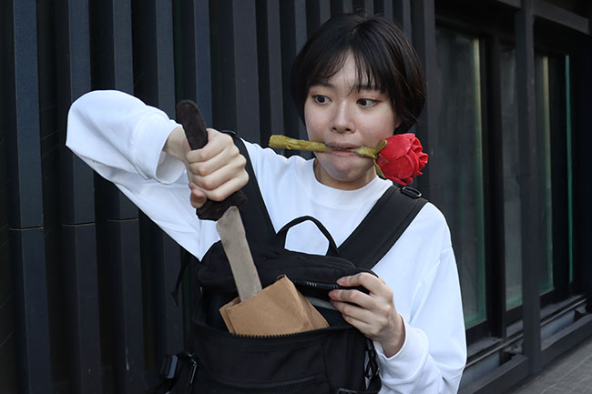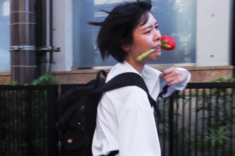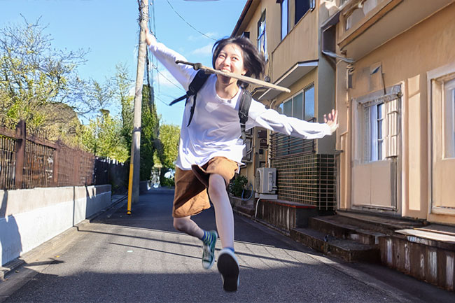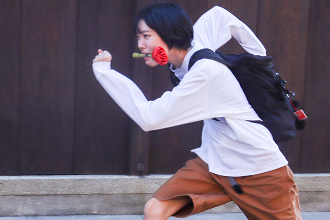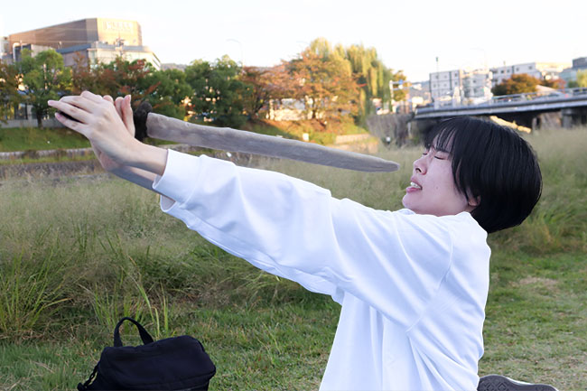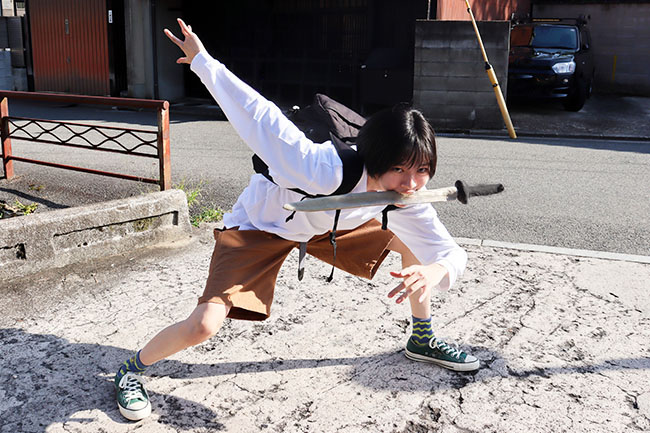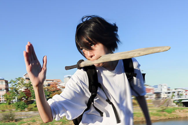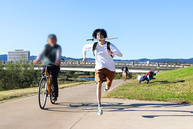 日本刀パンを咥えて走る