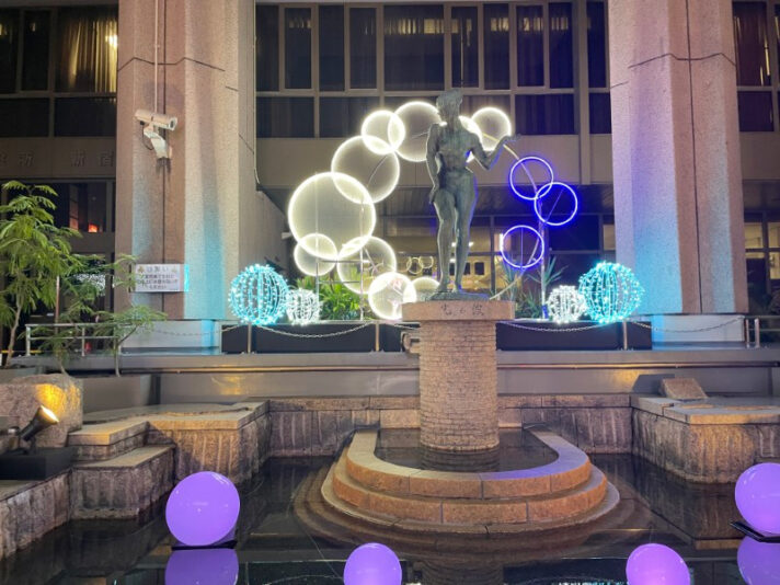 一周して区役所前の泉近くに腰掛ける。