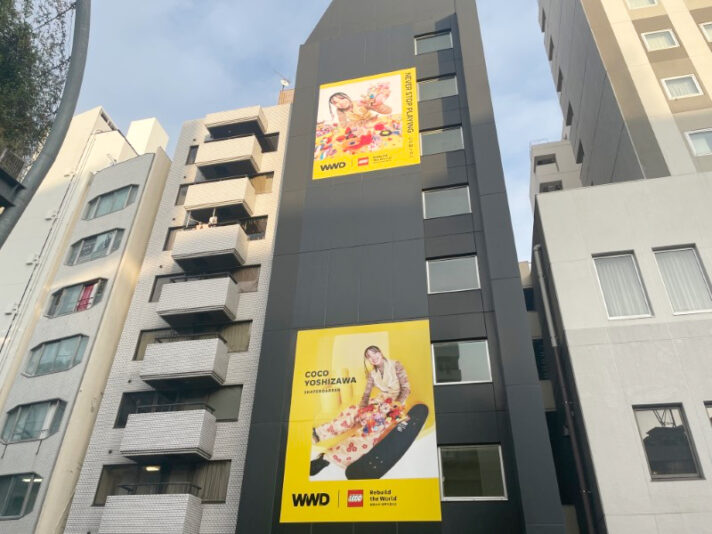 プロスケーター吉沢恋とレゴ。ストリートの街渋谷に相応しい広告かもしれない。