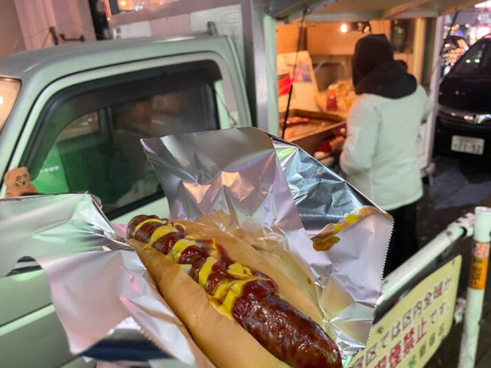 ベーコンホットドッグも魅力的だったがこの日はベーコンはやってなかった。