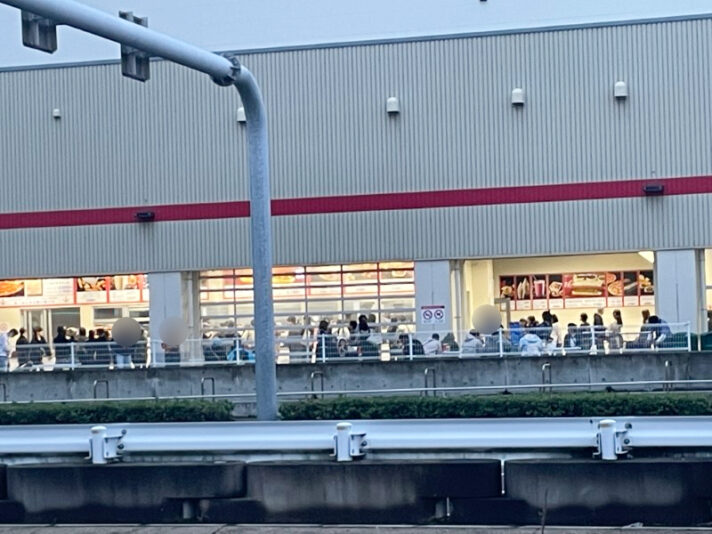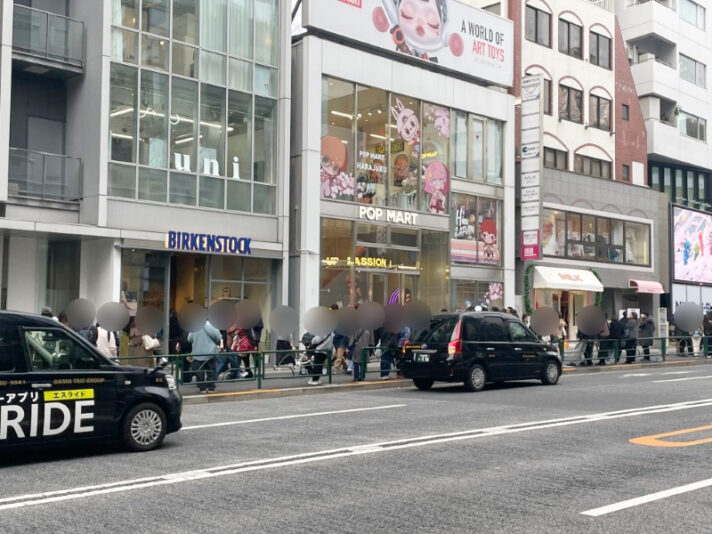 ポップマート前に入店待ちの行列ができている。