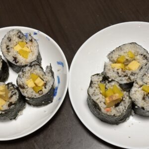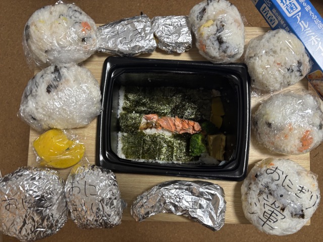 体感で言うと無限分ほどパックごはんをチンし続け、弁当容器に詰めていく。その上に海苔を貼る。この繰り返し。