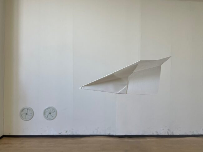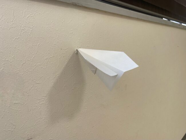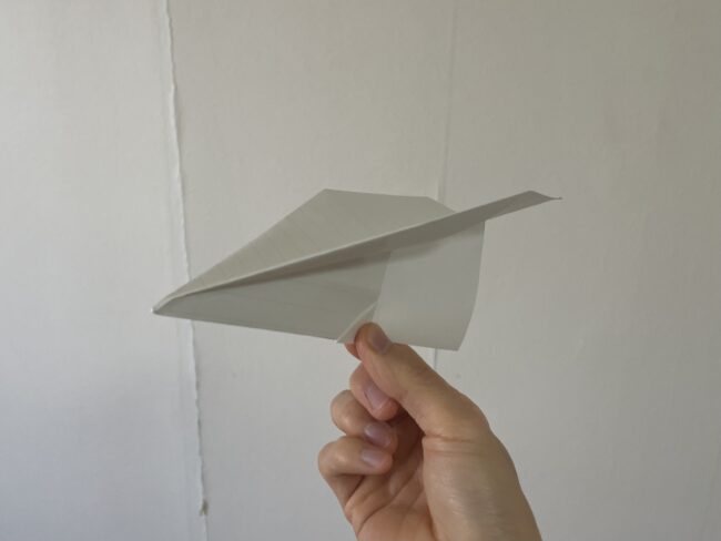 書いた紙をひこうきにしてよく飛んだほうが勝ちです