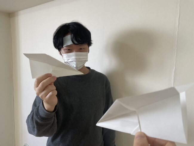 ルールは全然わからなかったがようは紙ひこうき勝負だろ?おれは地元じゃ「ひこにゃん」と呼ばれたほど紙ひこうきを折るのが得意なんだ。この勝負もらったな