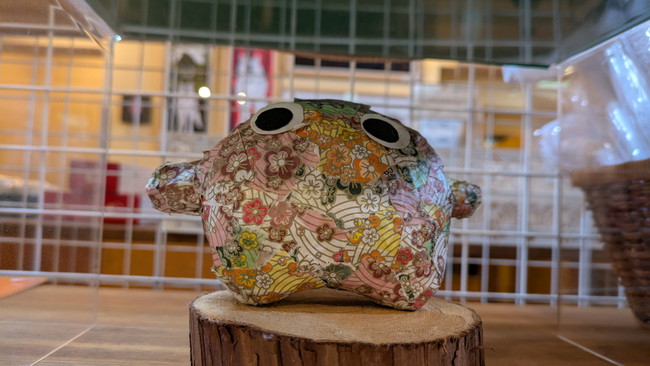先ほどのポストのタバスキーはベニヤ板で作られているみたいですが、村内を歩いてみるといろんなところで手作りタバスキーと出会うことができます。これは『ちぎり絵』でデザインされたタバスキーの置物。