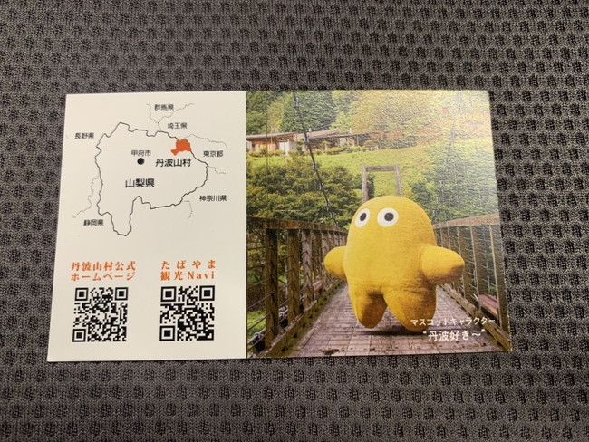 街灯のほかには丹波山村の観光パンフレットなどにも使われており、タバスキーは村外のみなさんへ丹波山村をアピールをする『広報』としてがんばってくれています!