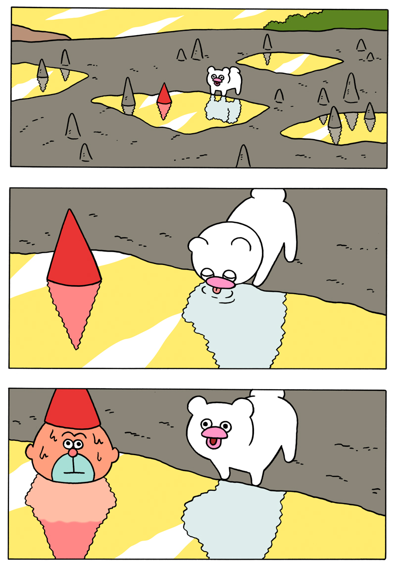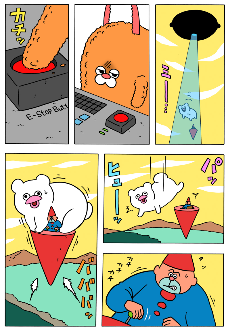 カートゥーンのキャラが自分が空中にいることに気づき、落下するまでの間に思うこと