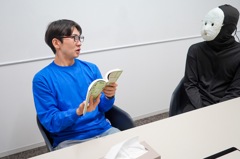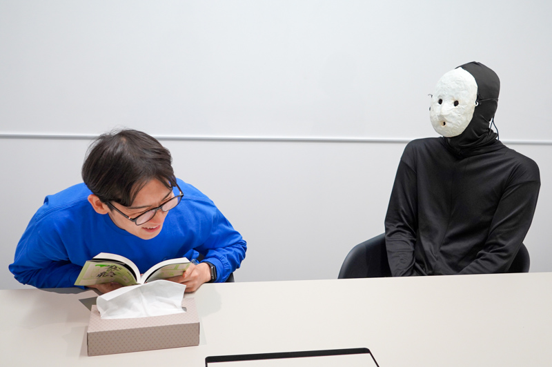 読み終わってお互いに拍手をおくる2人