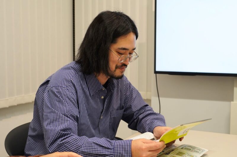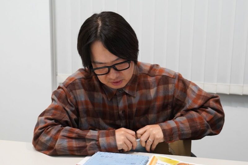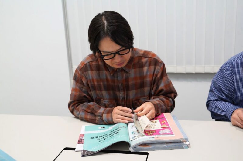 袋とじを開けてる