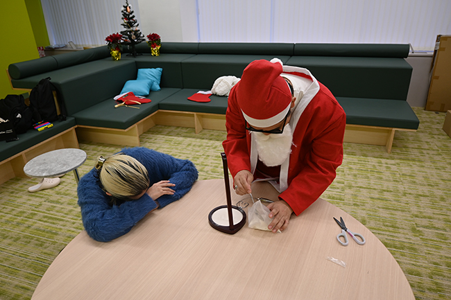 学校行事を手伝いに来た友達のお父さんじゃないよ。サンタクロースじゃ