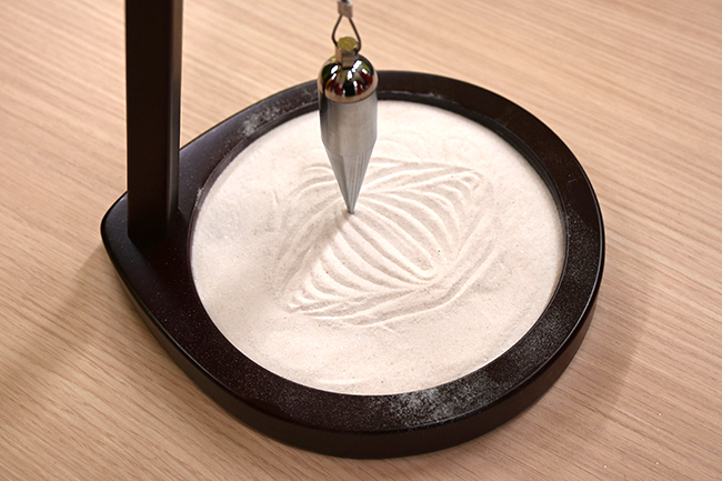 振り子をセットすると、なんと! 砂に幾何学的な模様が描かれていくんじゃ!!