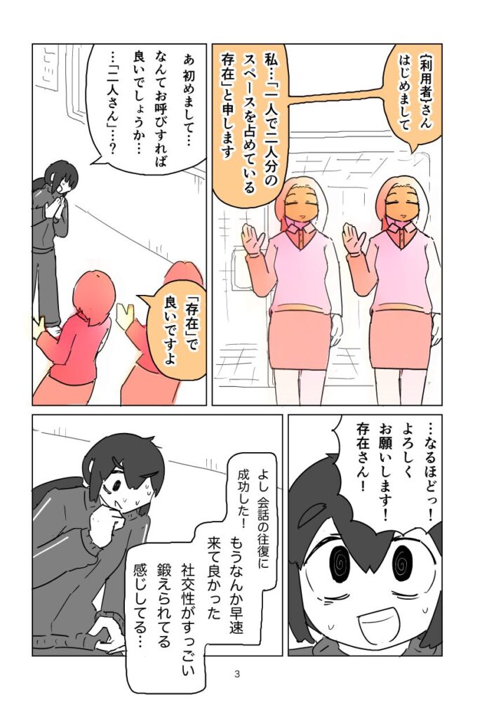 本記事は、シャベリハエトリグモ専用の漫画投稿サイト「しゃべコミック」に投稿された漫画「社交性トレーニングジム」(作者:とある外資系のシャベリハエトリグモ)を、人間の読者に向けて私がローカライズしたものです。