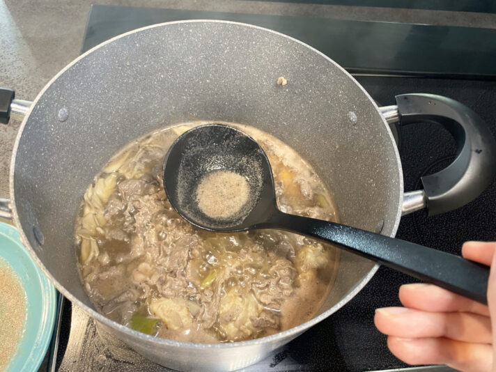 丁寧にアクを取ったら、さらに10分煮る。