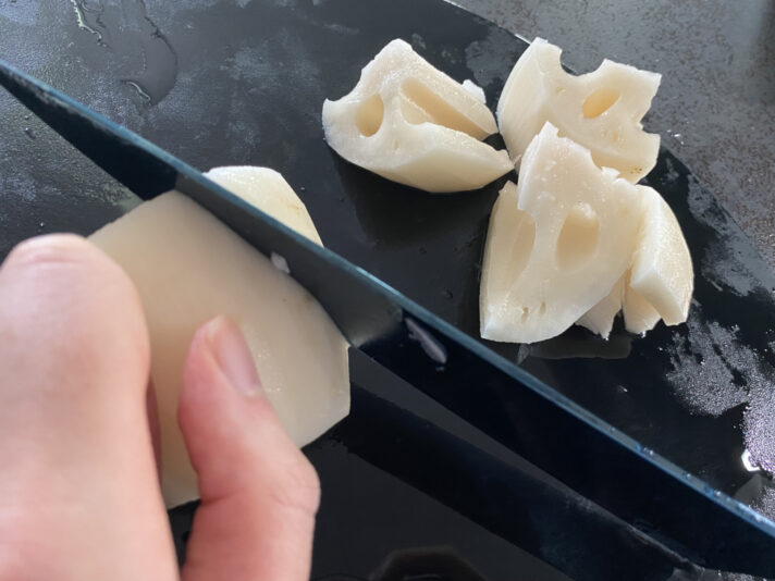 中に入れる根菜はいろんな派閥があるんですが、ここは私を信じてレンコンにしてください。