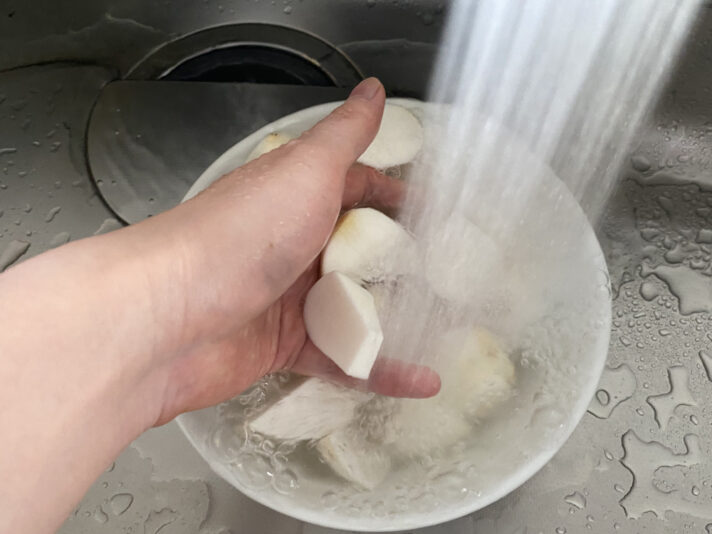 ここでようやく水洗いする!!!逆に言えば、包丁を使い終わるまで水洗いは厳禁です。