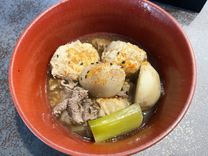 牛と鶏の脂がスープに溶け出してマジでうまい。レンコンのシャキシャキ食感も楽しいです。