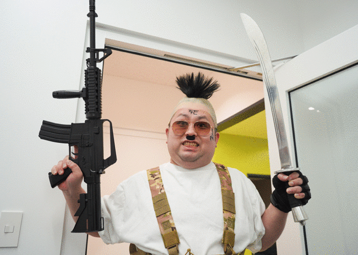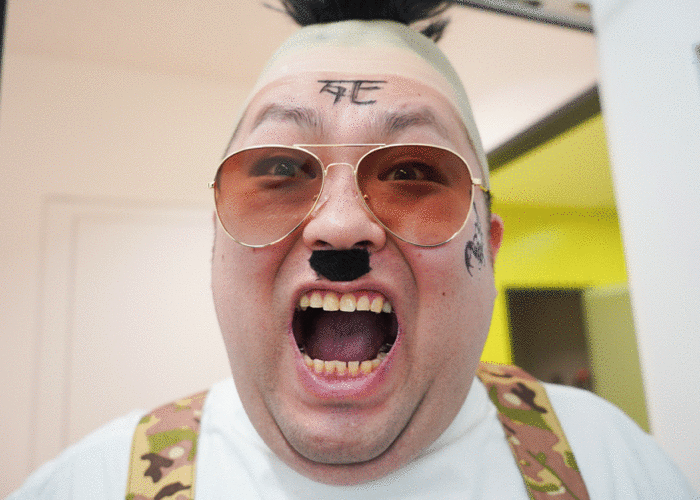 ていうか、その格好なんなんですか? 髭面大魔神ラッパーって名前も意味わからないし