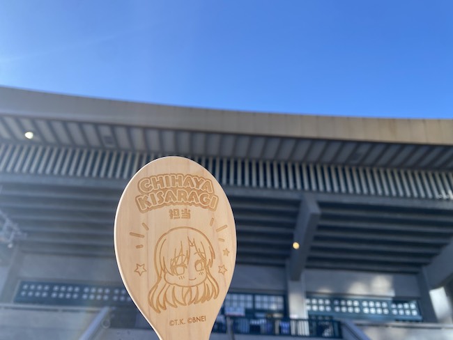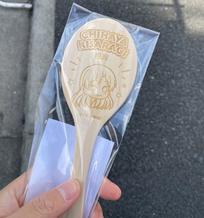 こっちは物販で買ったしゃもじ。なんでしゃもじに如月千早の顔を彫刻して売ろうとしたのかは全然わからないが、なんか良いから買ってしまった。余談だが近年アイマスからはしゃもじが何本かグッズとして出ている。これが初めてではない。きっとバンダイナムコは俺たちにお米をよそわせたいんだ。