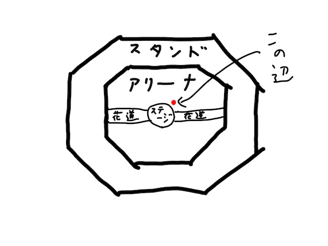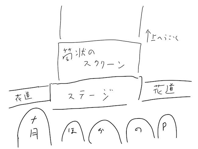 初日と違って二日目の席はめちゃめちゃ悪かった。メモリアルグッズ付きではない通常のチケットにしてしまったからだろうか。それにしても悪い。威勢のいい寿司屋で「大将、一番悪い席一丁!」と言ったら「あいよ!」とこの席を握ってくれるだろう。