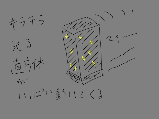 言ってしまえば千早が投影されている中央のスクリーンだって直方体だ。ステージの上には今直方体しかない。エコーロケーションで物の形だけを見る生き物がこの時の俺を見たら「よっぽど直方体が好きなんだなあ」と思うことだろう。