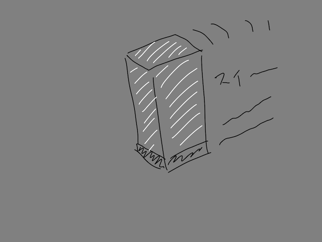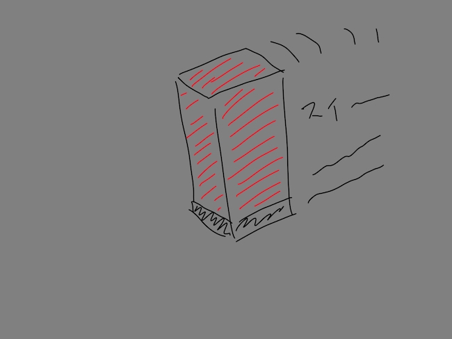 斜め上からだと中央のスクリーンがかなり「板」に見えちゃうな……できれば見たくない何も投影されていない細い面が見えちゃう。ついでに図には書いてないけどモニターにもスピーカーが被っていて見えたもんではなかった。