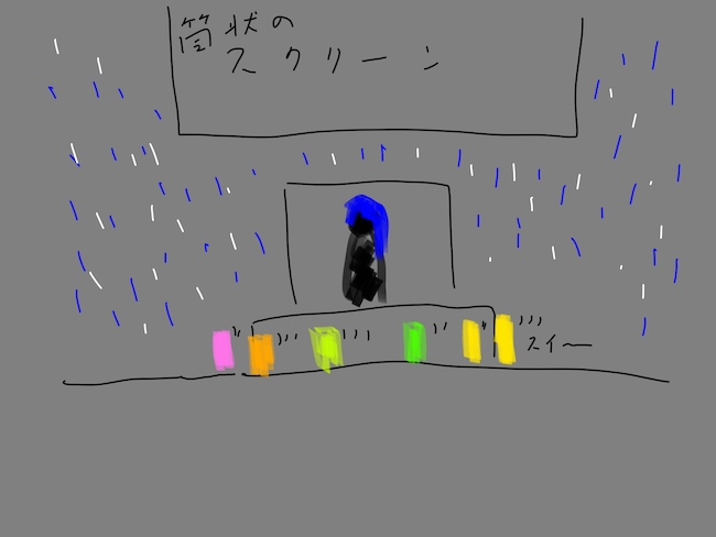 ライブ後半、こういう四面にディスプレイがついて映像を流しながら動くラジコン灯籠みたいなロボが花道を通ってスィ〜〜〜〜とたくさん出てきたのだ。