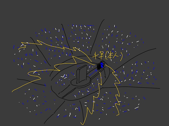 仕組みとしてはこうだ。両側にでっかい映像を映し出せるロボが花道にいて、千早が歩くペースにピッタリ合わせて動くことで如月千早が花道を歩いているようにしか見えない状態を作り出すというものだ。俺の画力がカスなので「ふーん」と思っているかもしれないが、実際に見たら腰を抜かすと思う。俺も抜けた腰が武道館からまだ返ってきてない。