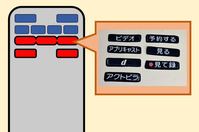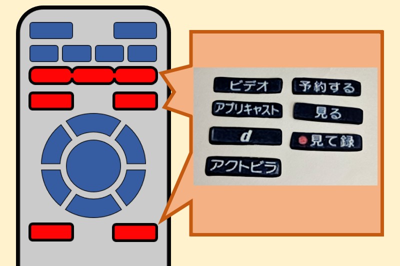 ここに4ボタン×2列がありました。すぐ下がチャンネルボタンですし、バランス理論的にもココに「地デジ系」と「四色ボタン」を置きたい