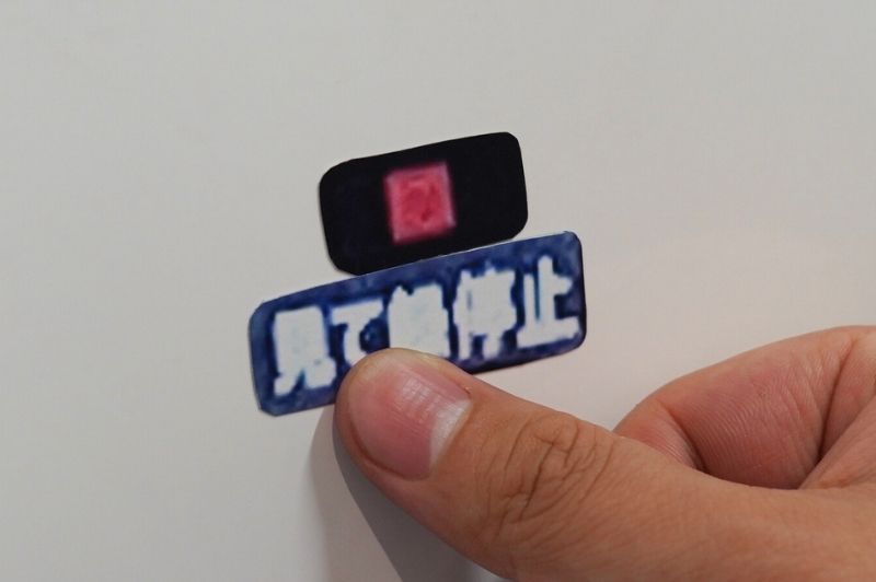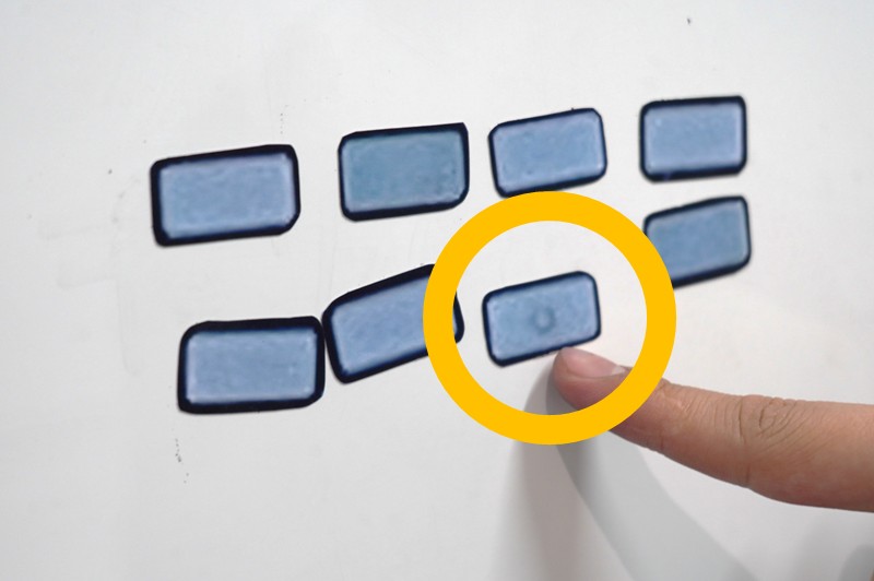 青無字8ボタンのうち1つだけに、うっすらと丸い跡が映ってるんです。これは明らかに出っ張り部分です