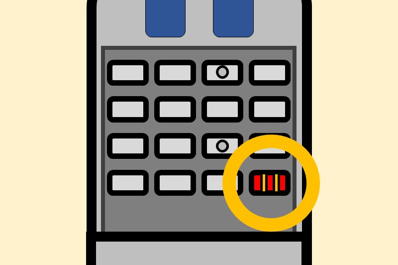 点みたいな出っ張りのあるボタンが2つ。そして、タテに2本線の出っ張りのあるボタンが右下に1つ。特に2本線ボタンは触ってて明らかに特別感がある