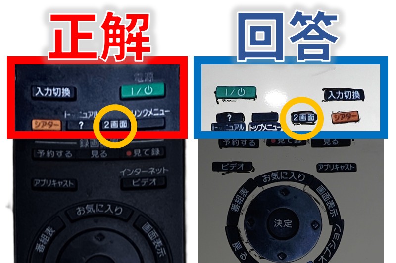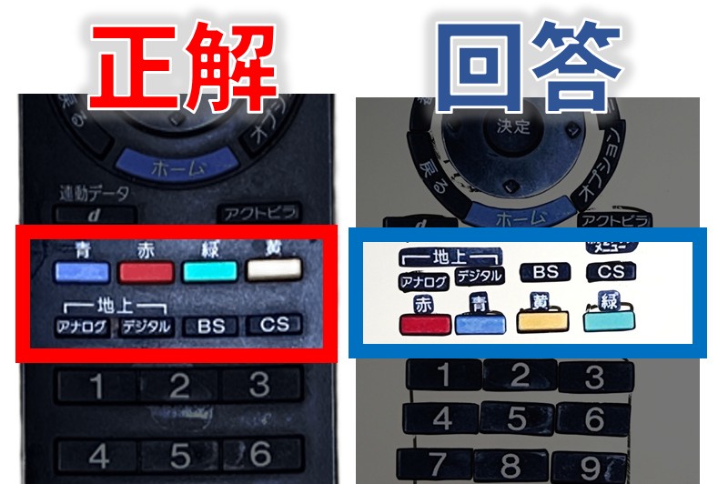 このパートは悲惨。組み合わせは合ってるけど上下が逆だし、四色ボタンの位置を全部外してて逆にすごい。「決定」ボタンとの位置関係を冷静に吟味したら、四色ボタンが上、まではイケたかもなあ
