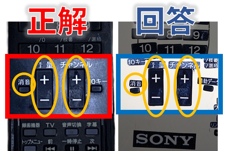 「音量」と「チャンネル」の左右位置を無意識に当てていました