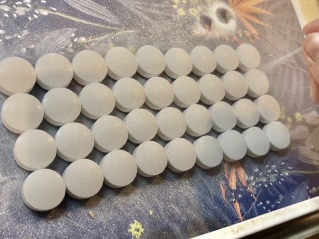 ラムネを銀の食用スプレーで着色するとおっきいアラザンになる。