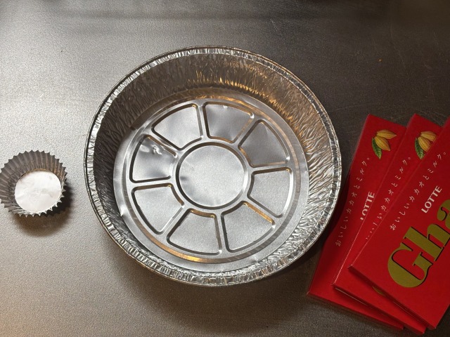 このまま、ど正直にこのアルミカップに大量のチョコレートを流し固めるとすると……