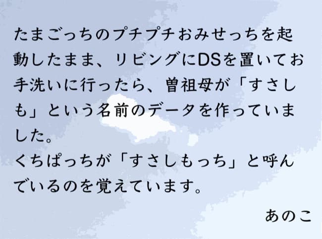 なんとなく語感がいいなすさしもっち。「っち」がつくことでおさまりがよくなっている気がする。