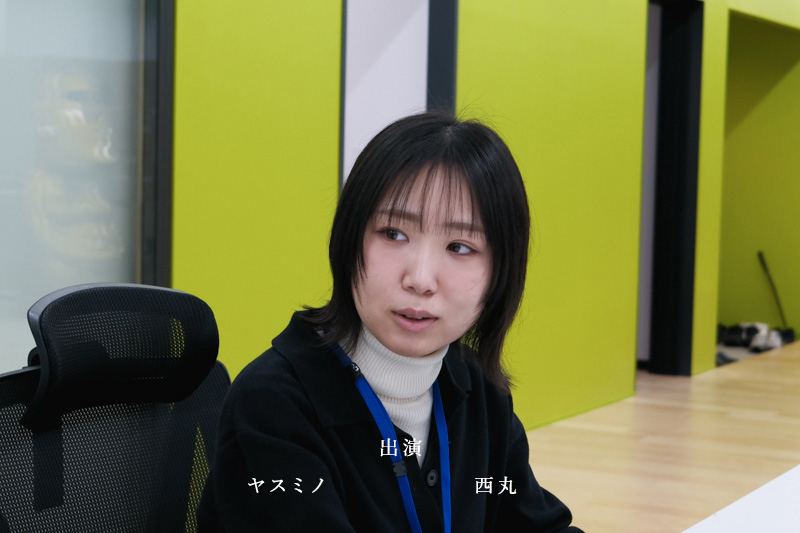 西丸です。よろしくお願いします。以前は「すぐやる課」にいたんですけど、すぐにやることが苦手だったこともあり、この「一旦落ち着いてからやる課」に移動になりました