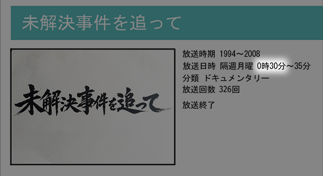 士倉:昔、月曜深夜0時半から「未解決事件を追って」というドキュメンタリーが流れていました。