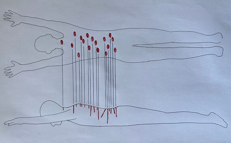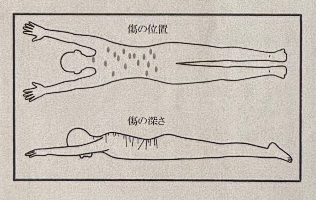 彼の背中と首には、あわせて17におよぶ刺傷が残されていた。