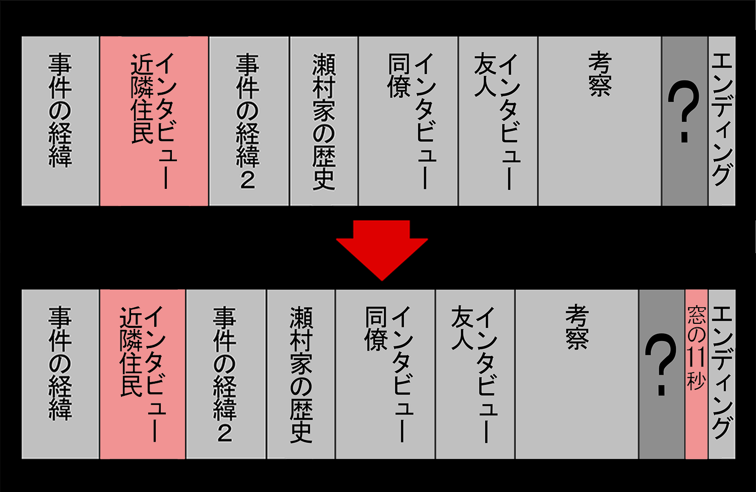 雨穴:近隣住民のインタビューが11秒カットされて、かわりにあの11秒が追加されたわけだから……