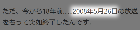 でも、今から18年前……2008年5月26日の放送をもって突如終了したんです。