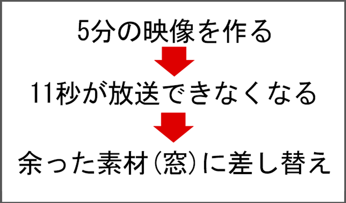 栗原:まず尾坂辺さんは、元の映像から近隣住民のインタビューを11秒カットし、かわりに窓のアップを11秒差し込んだ。