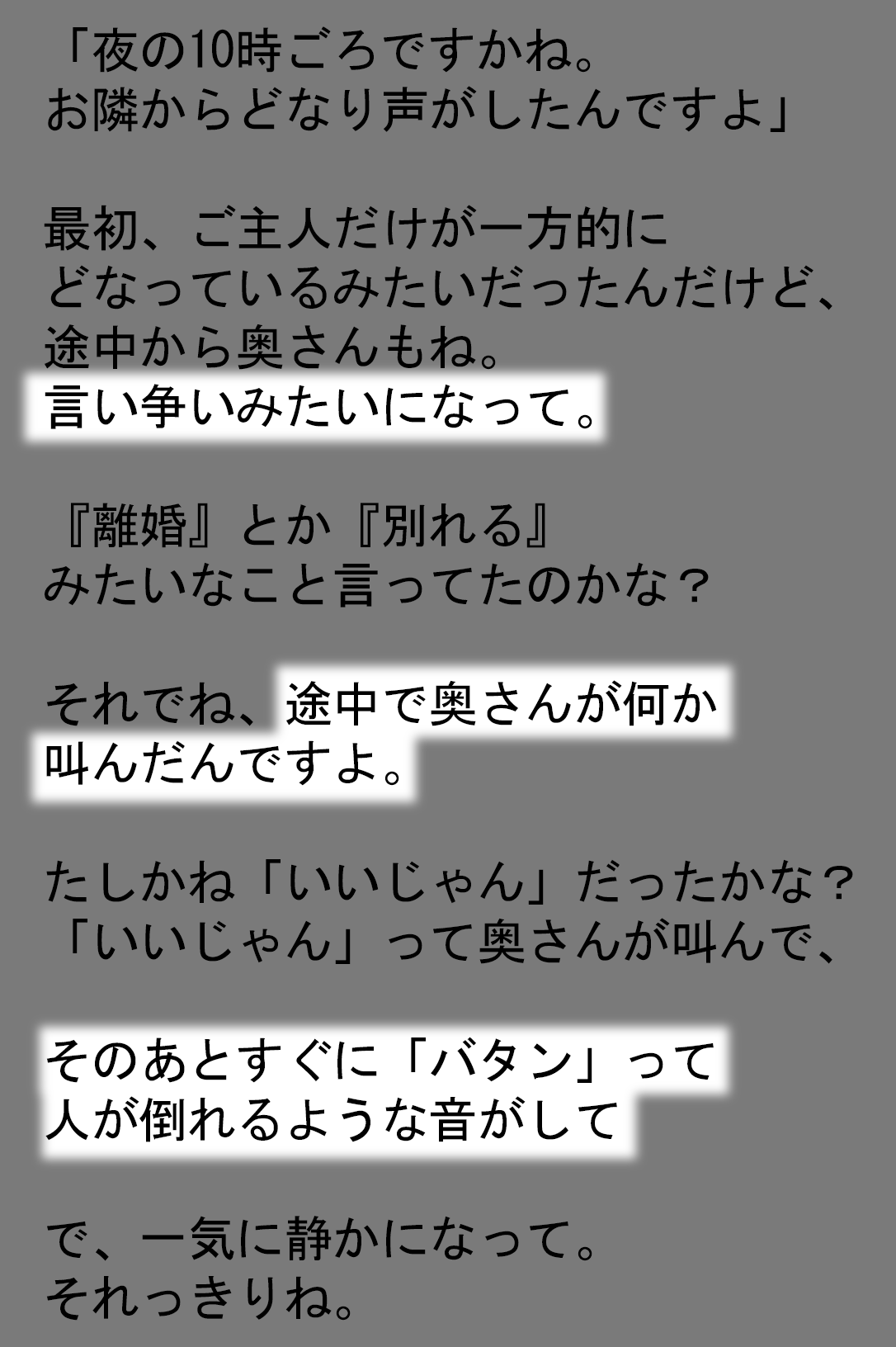事件があった夜について、第一通報者でもある隣家の住民はこう語った。