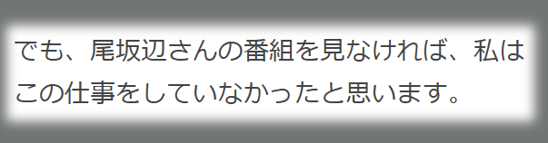 でも、尾坂辺さんの番組を見なければ、私はこの仕事をしていなかったと思います。