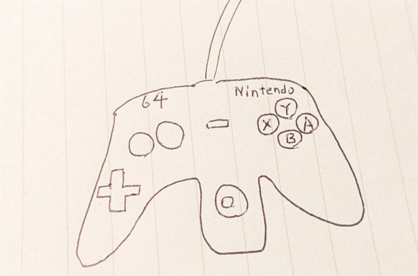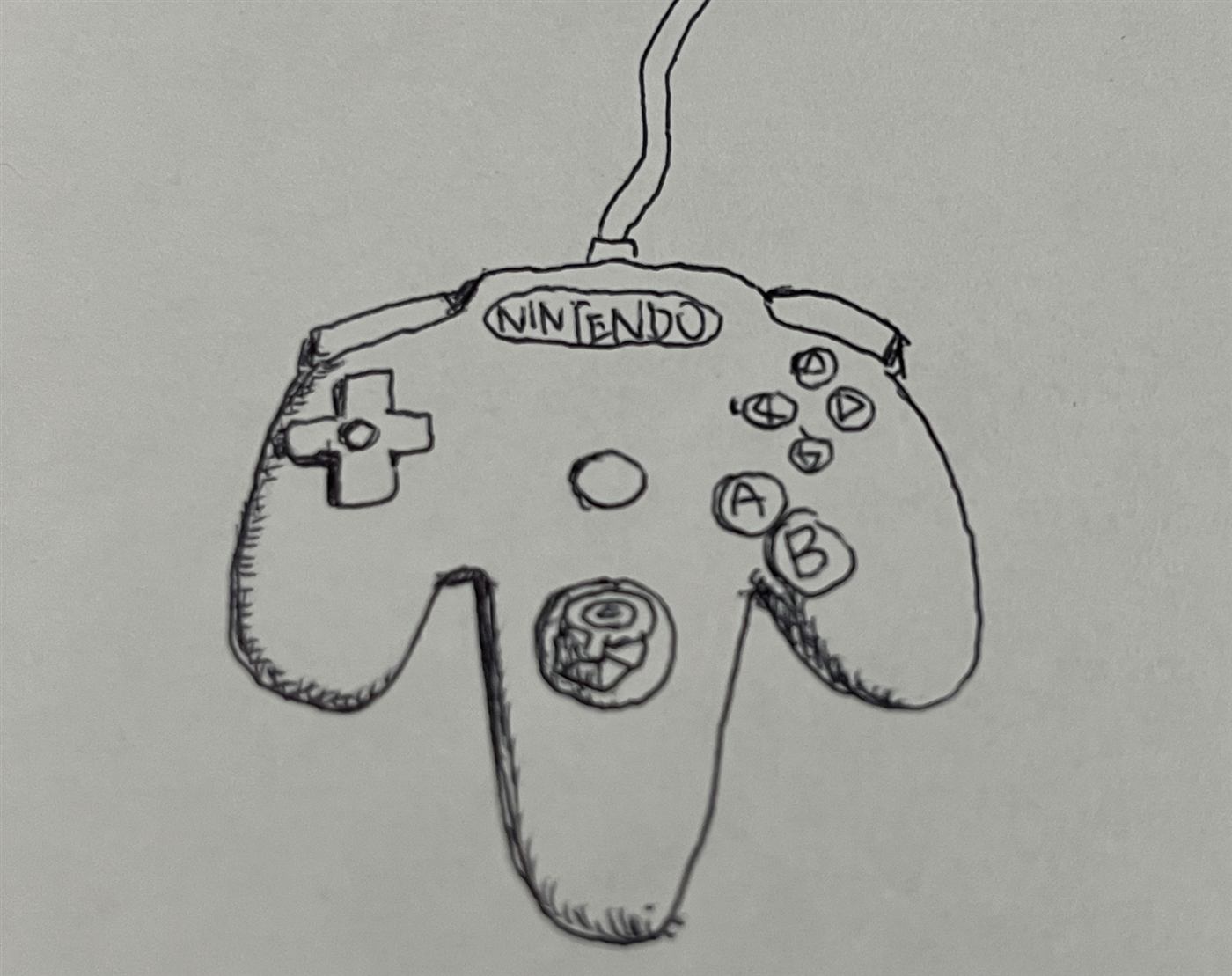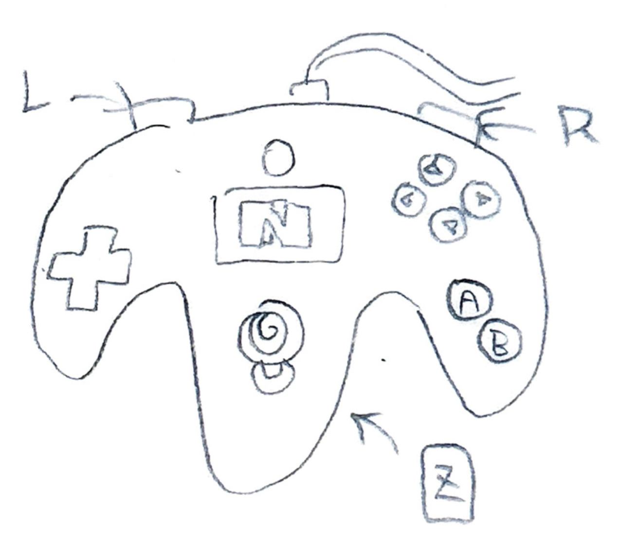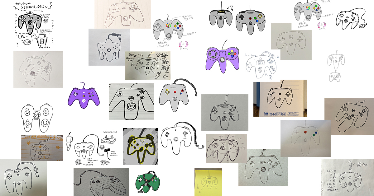 「NINTENDO 64のコントローラーを思い出して描いてほしい」