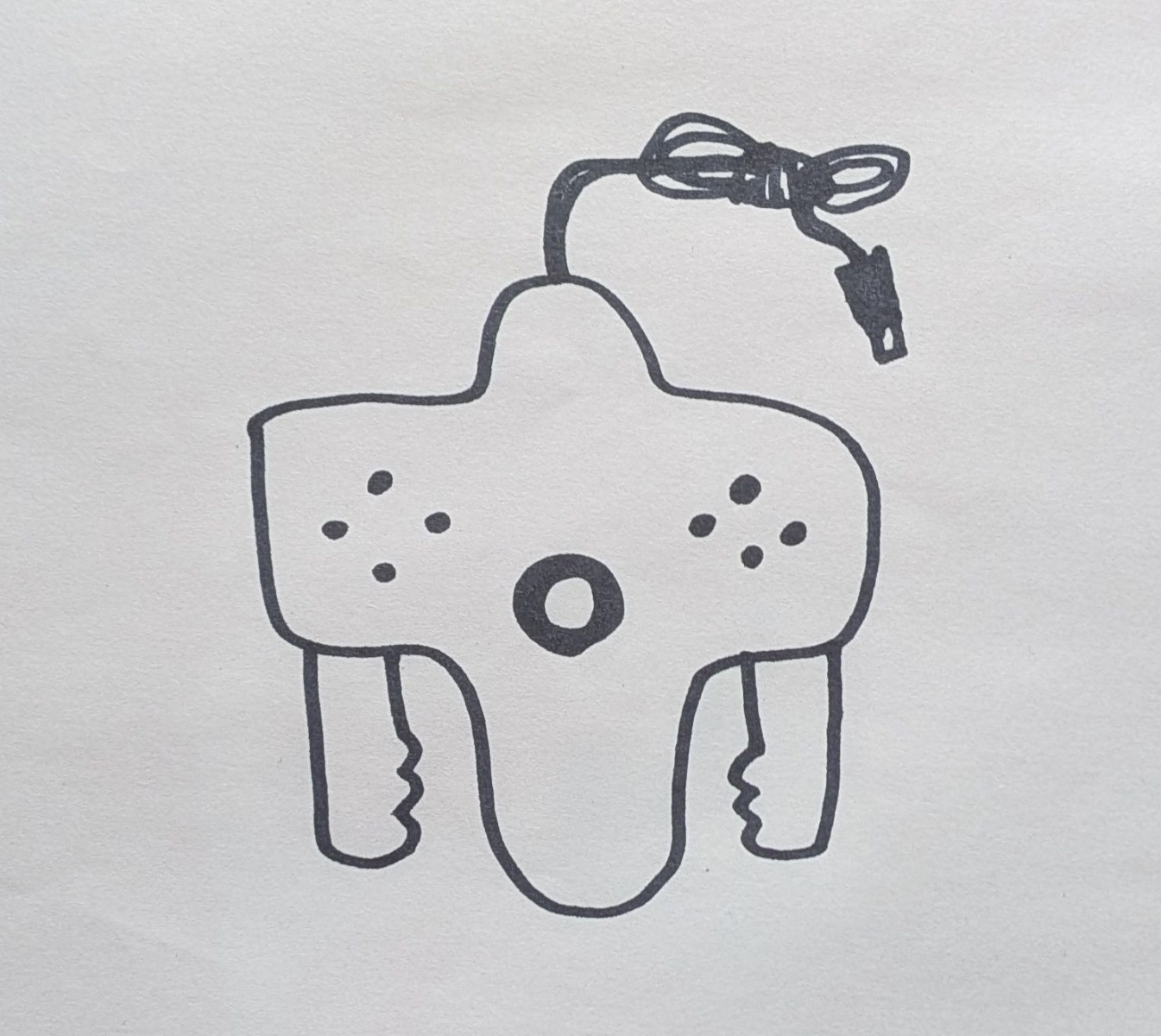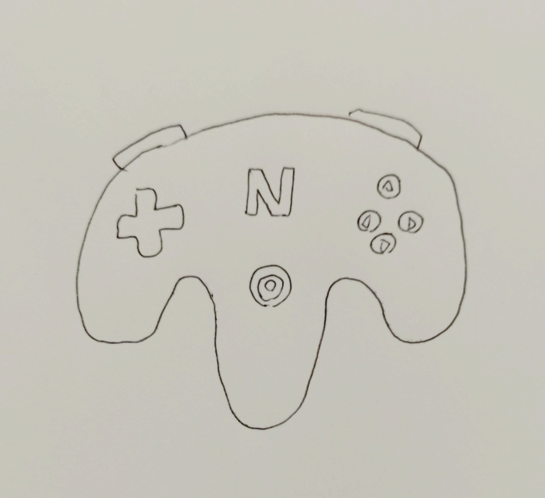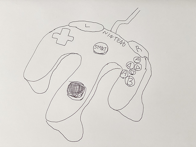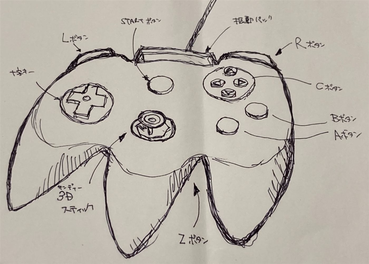 「NINTENDO 64のコントローラーを思い出して描いてほしい」