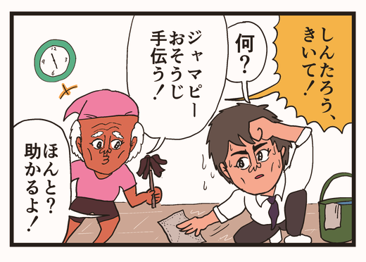 【4コマ漫画】ジャマピーのおそうじ(ポテチ光秀)